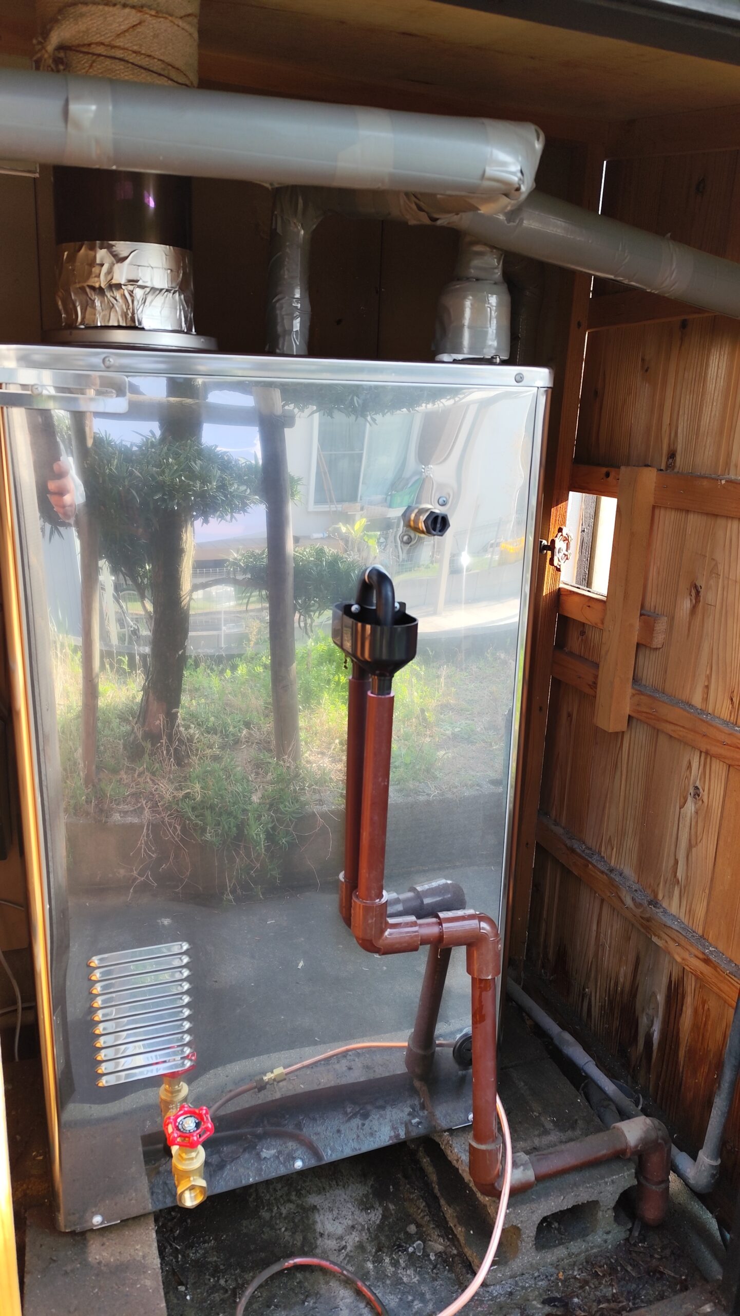 新しい給湯器の配管を既存の配管にあわせことが大変でしたが